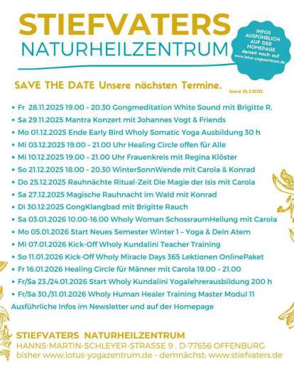 bitte bequeme Kleidung, eigenes Handtuch und Trinkwasser mitbringen.
